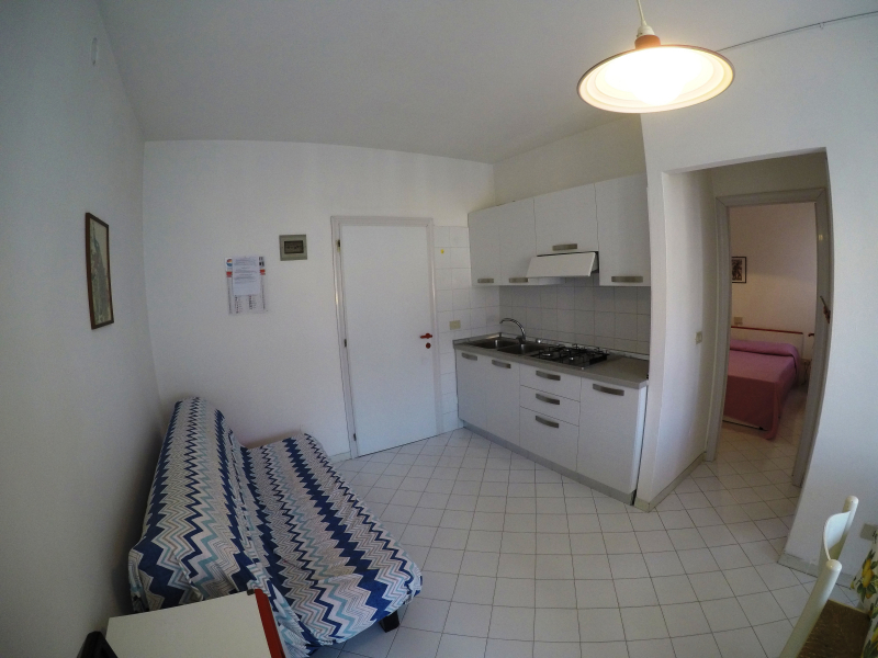 Edoardo 57/4 ist eine Zweizimmerwohnung an der Piazza San Giorgio in Rosolina Mare, im ersten Stock eines Gebäudes mit Aufzug, 200 Meter vom Meer und den Dienstleistungen entfernt. Alles auf einer Etage entwickelt, besteht es aus einem Wohnbereich mit einer Kochnische mit vier Kochplatten, einem Kühlschrank, einem Fernseher, einem Doppelschlafsofa und einer Klimaanlage. Es gibt ein Schlafzimmer mit Doppelbett, und ein Badezimmer mit Waschbecken, WC, Bidet, Dusche und Waschmaschine. Am Ende gibt es auch eine Terrasse mit Blick auf den Platz und das Meer, Markise, Tisch und Stühle im Freien und reservierter Parkplatz innerhalb der Eigentumswohnung.